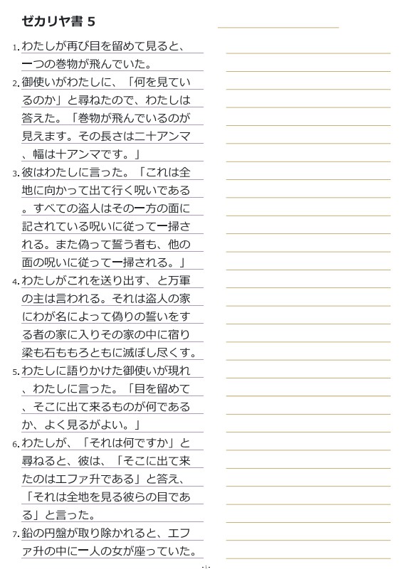 스가랴5장 일본어성경필사