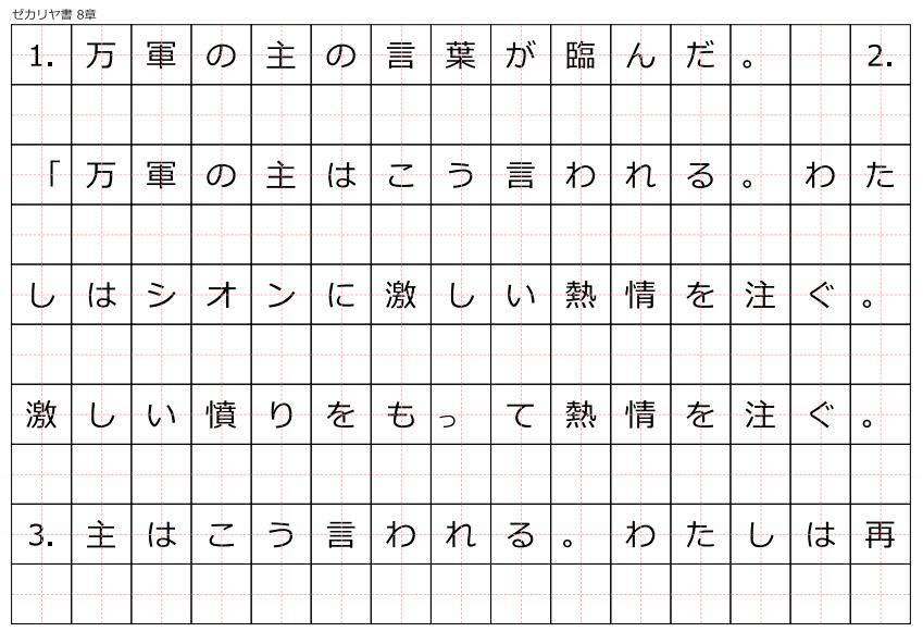 | ゼカリヤ書 6 書き写し 스가랴6장 일본어성경필사 PDF (0) | 2024.11.13 |