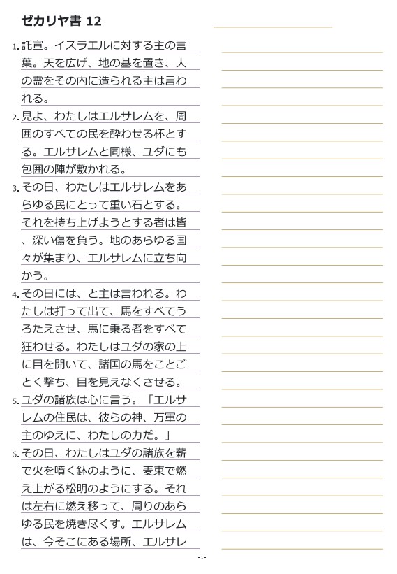 | ゼカリヤ書 14 書き写し 스가랴14장 일본어성경필사 PDF (1) | 2024.11.13 |