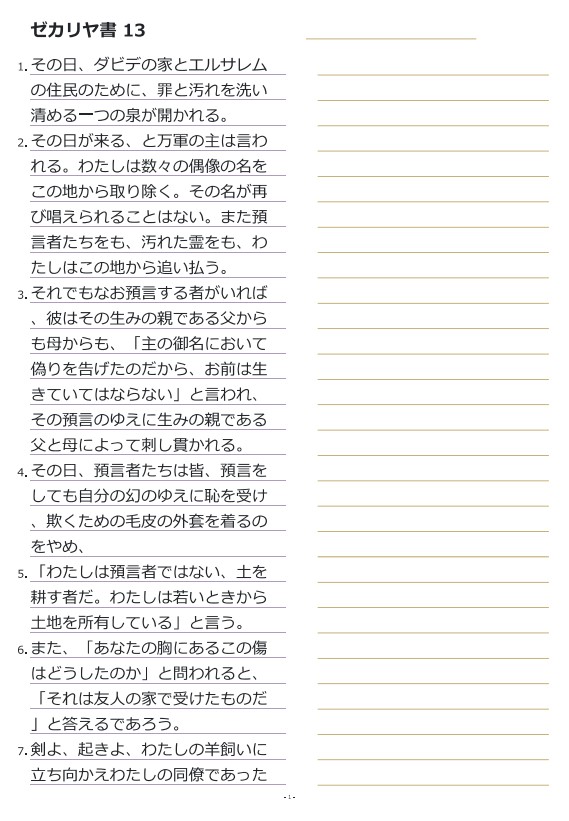 ゼカリヤ書13 書き写し (新共同訳)
