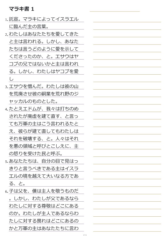 말라기1장 일본어성경필사