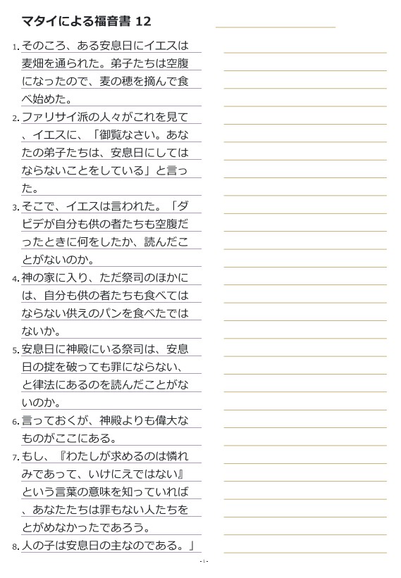 마태복음12장 일본어성경따라쓰기