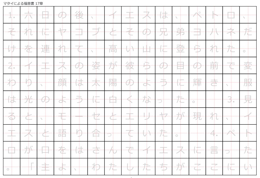 | マタイによる福音書 16 書き写し 마태복음16장 일본어성경필사 PDF (0) | 2024.11.14 |