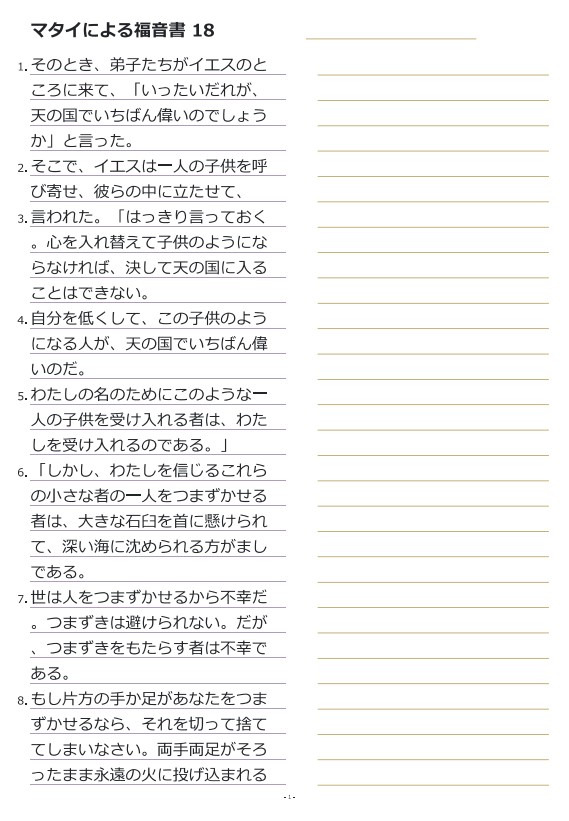 마태복음18장 일본어성경따라쓰기