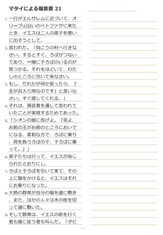| マタイによる福音書 19 書き写し 마태복음19장 일본어성경필사 PDF (0) | 2024.11.14 |