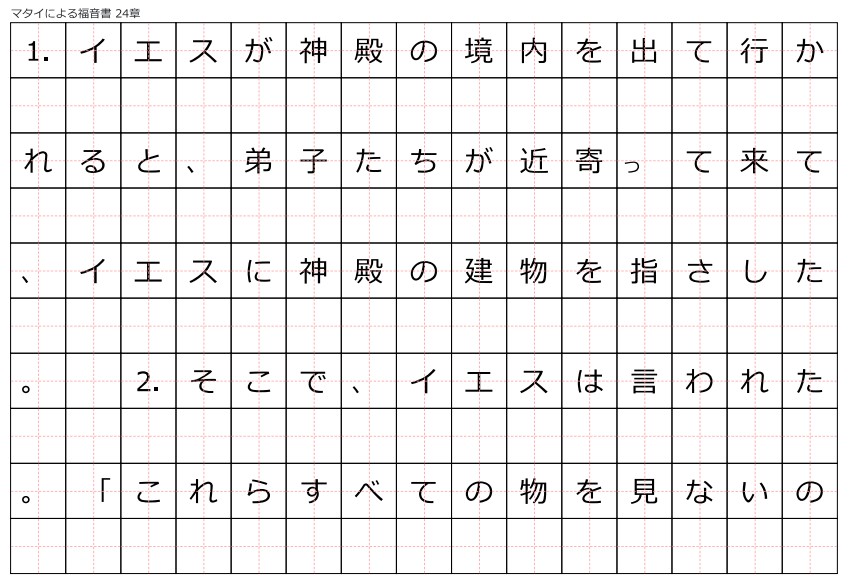 | マタイによる福音書 21 書き写し 마태복음21장 일본어성경필사 PDF (0) | 2024.11.14 |