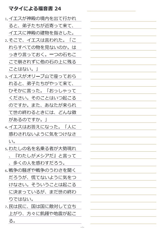 | マタイによる福音書 25 書き写し 마태복음25장 일본어성경필사 PDF (1) | 2024.11.15 |