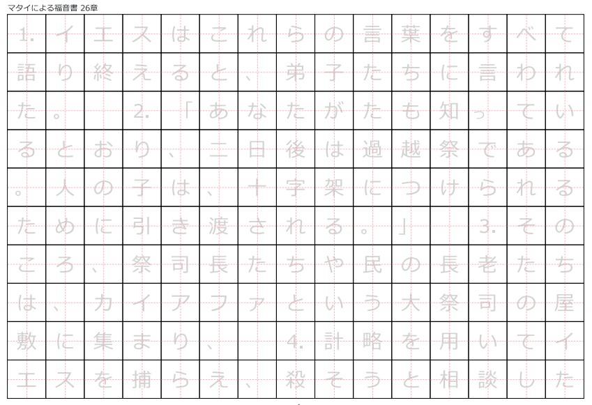 | マタイによる福音書 24 書き写し 마태복음24장 일본어성경필사 PDF (0) | 2024.11.15 |
