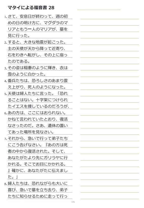 마태복음28장 일본어성경따라쓰기