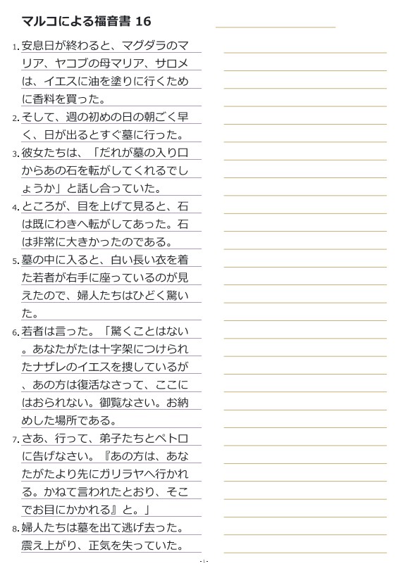 | マルコによる福音書 14 書き写し 마가복음14장 일본어성경필사 PDF (1) | 2024.11.15 |