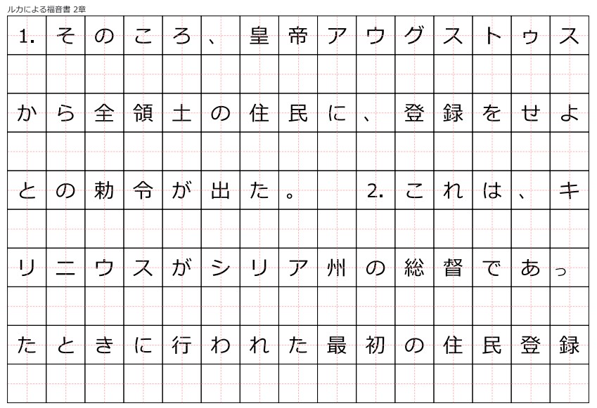 ルカ2:1 そのころ、皇帝アウグストゥスから全領土の住民に、登録をせよとの勅令が出た。