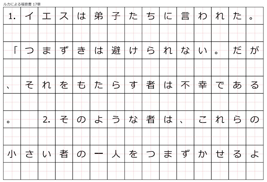 ルカ17:1 イエスは弟子たちに言われた。「つまずきは避けられない。だが、それをもたらす者は不幸である。