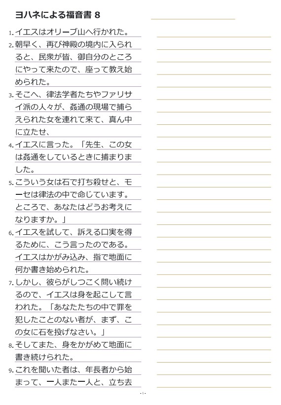 | ヨハネによる福音書 9 書き写し 요한복음9장 일본어성경필사 PDF (0) | 2024.11.19 |