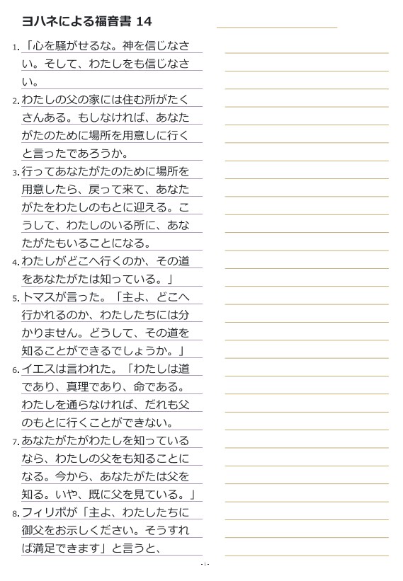ヨハネによる福音書14 書き写し (新共同訳)