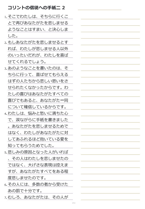 고린도후서2장 일본어성경따라쓰기