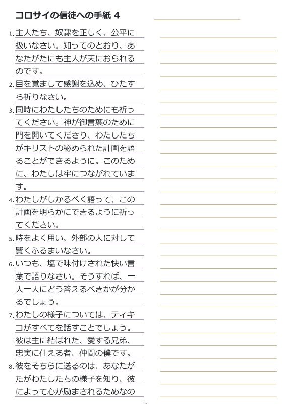 コロサイの信徒への手紙4 書き写し (新共同訳)