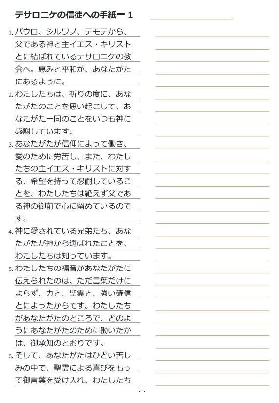 데살로니가전서1장 일본어성경따라쓰기