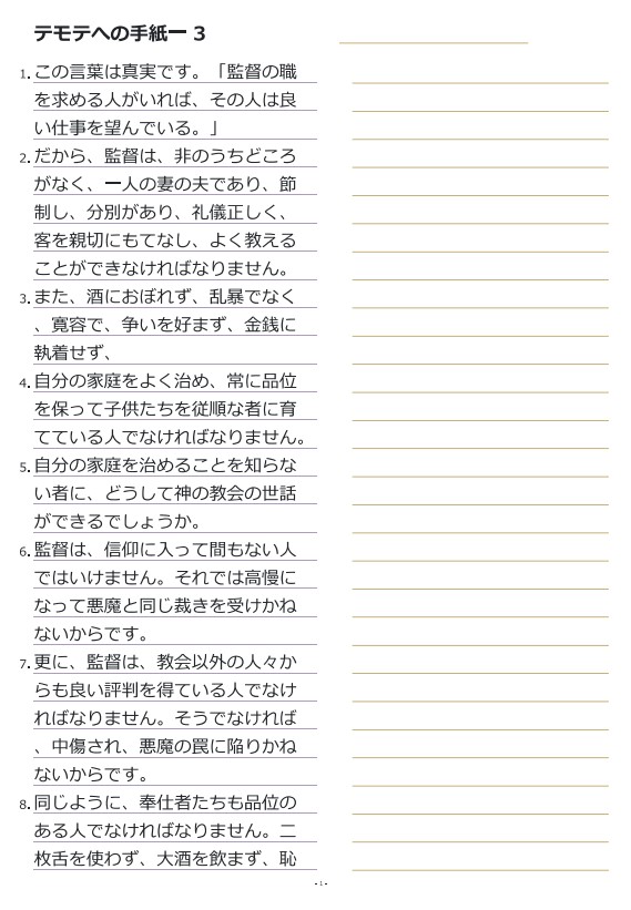 | テモテへの手紙一 4 書き写し 디모데전서4장 일본어성경필사 PDF (0) | 2024.11.24 |