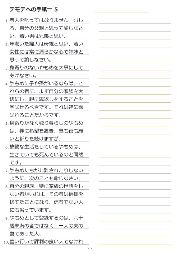 디모데전서5장 일본어성경따라쓰기