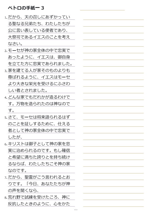 히브리서3장 일본어성경따라쓰기