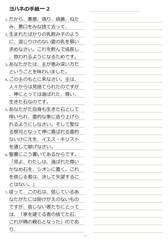 | ペトロの手紙一 3 書き写し 베드로전서3장 일본어성경필사 PDF (0) | 2024.11.27 |