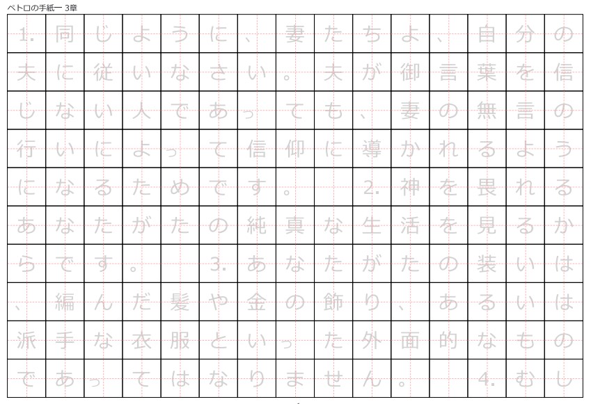 | ペトロの手紙一 5 書き写し 베드로전서5장 일본어성경필사 PDF (0) | 2024.11.27 |